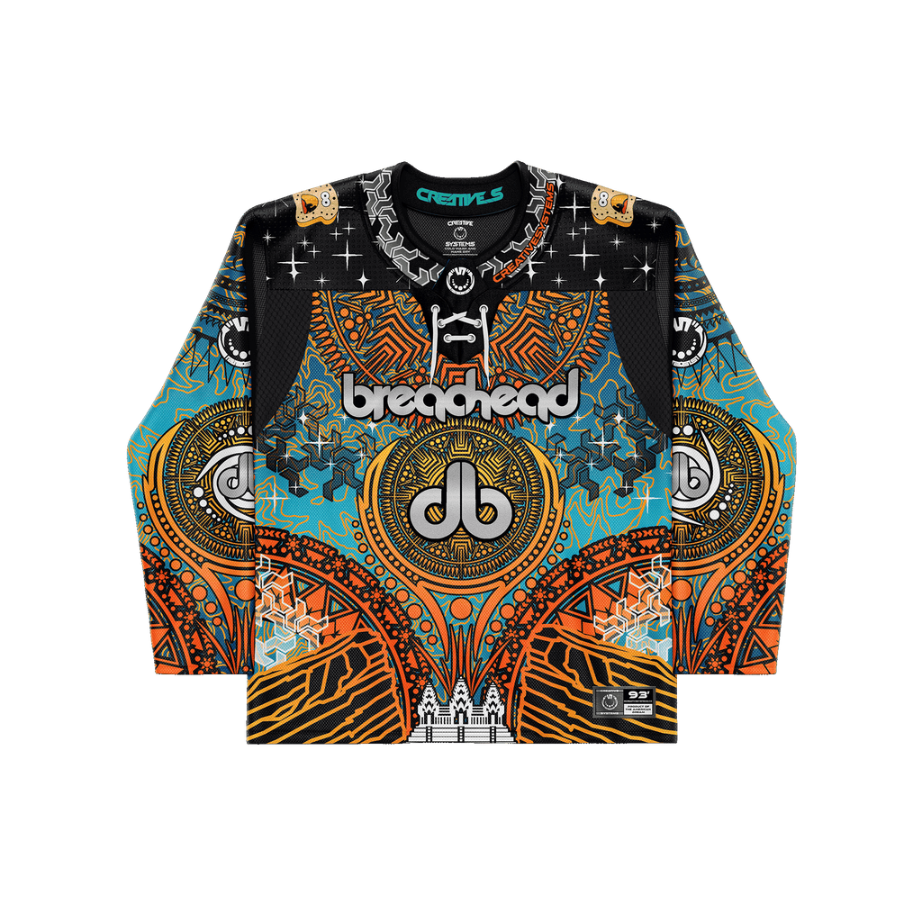Step onto the dancefloor or into the crowd with a piece built to shine in every universe. The Bread Head Reflective Hockey Jersey fuses celestial energy with intentional design, featuring layered geometric patterns, flowing contour lines, and mandala focal points that catch the eye from every angle. Whether you’re deep in the crowd or moving through the night, this jersey was made to stand out.